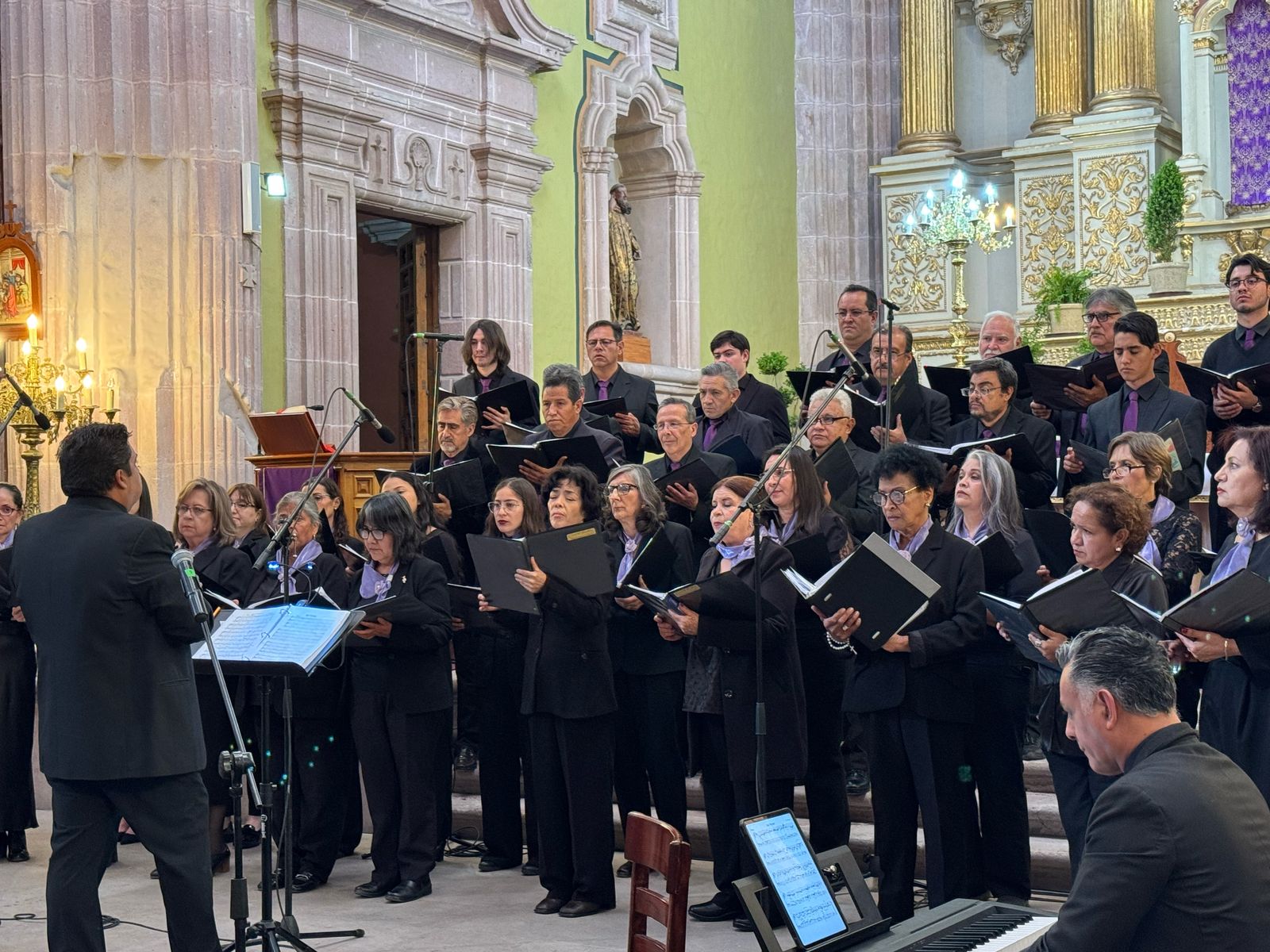 Como parte del programa del Festival Cultural del Bienestar Zacatecas 2025, la agrupación Coral de Zacatecas ofreció el primero de sus dos conciertos gratuitos de música sacra, en el templo de Santo Domingo, donde se dieron cita decenas de turistas y familias locales.
