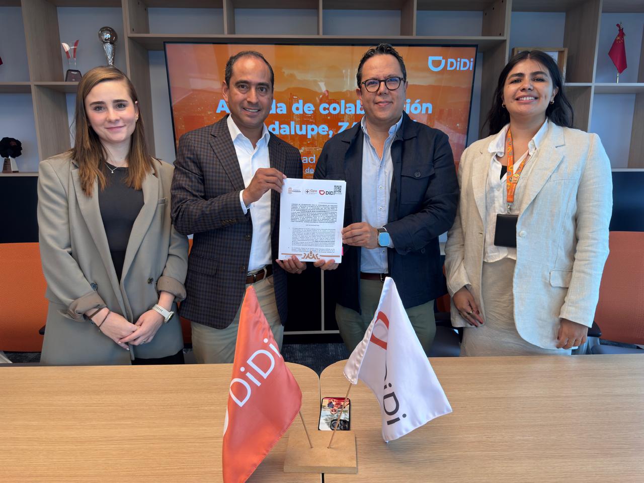 Finalmente, el acuerdo fue signado por José Saldívar Alcalde, Presidente Municipal de Guadalupe, Zacatecas; Analí Infante Morales, Síndica Municipal; María de la Luz Muñoz Morales, Titular de la Dirección de la Mujer Guadalupense; y como representante de DiDi México, Magaly Palacios, Gerente de Relaciones Gubernamentales.