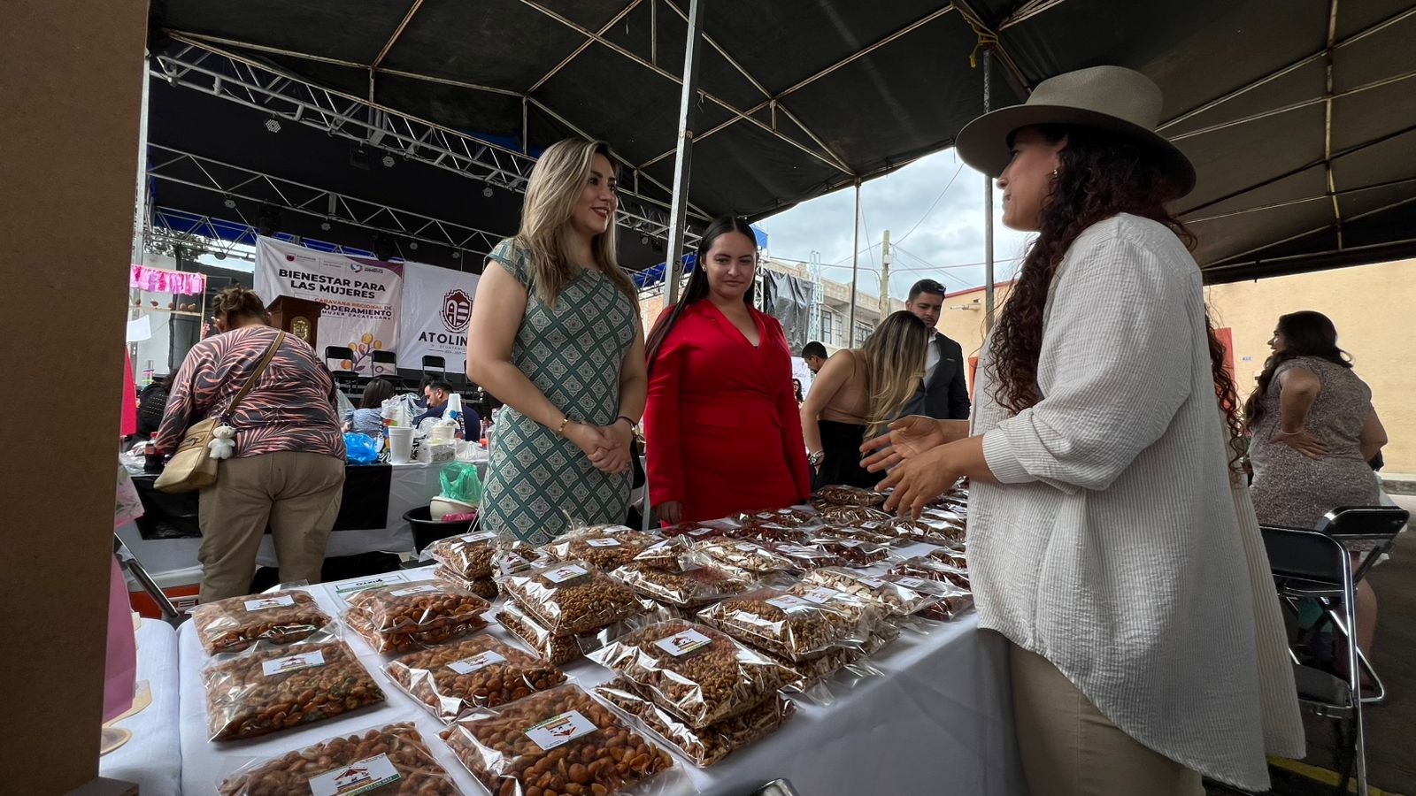 Durante el evento, se llevó a cabo un recorrido por los stands de exposición y venta de productos, encabezado por la Secretaria de las Mujeres, en compañía de autoridades municipales. El objetivo fue visibilizar el trabajo de las mujeres emprendedoras, apoyarlas en la comercialización de sus productos y fomentar el consumo local, más allá de sus comunidades de origen.