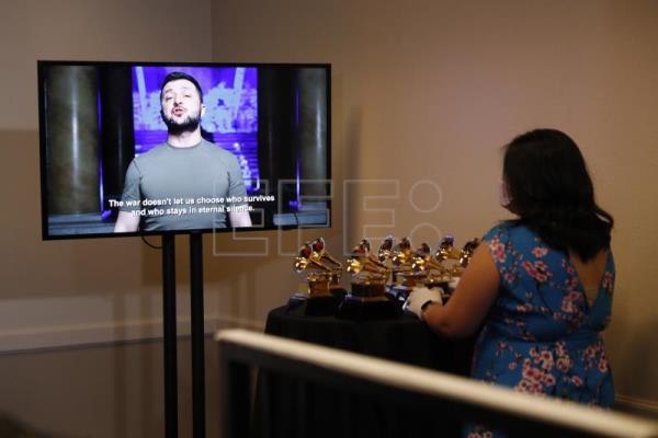 Las Vegas (EE.UU.), (EFE).- El presidente de Ucrania, Volodímir Zelenski, intervino en la gala de los 64 premios Grammy con un mensaje previamente grabado en el que pidió a los artistas presentes en la cita que no guarden silencio ante la invasión rusa porque "no hay nada más opuesto a la guerra que la música".