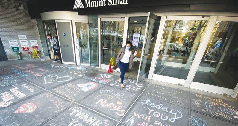 Una dosis diaria a las 4 y media de la tarde de “Call On Me”, de la australiana Starley, alegra al personal de uno de los hospitales de Mount Sinai en la ciudad, quienes aplauden cuando dan de alta a sus pacientes con COVID-19 de las sobrepasadas instalaciones abrumadas.