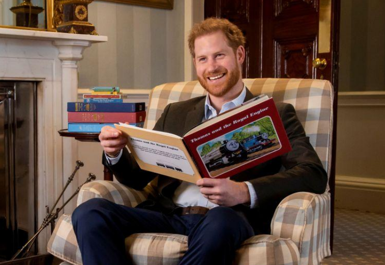 Sentado en un sillón y sosteniendo uno de los libros de la serie, el príncipe Enrique presenta el episodio “Thomas & sus Amigos: la Locomotora Real” y dice: “Todo comenzó cuando un niño estaba enfermo en la cama. Su amoroso padre lo entretuvo con historias de un ferrocarril especial en la isla mágica de Sodor”.
