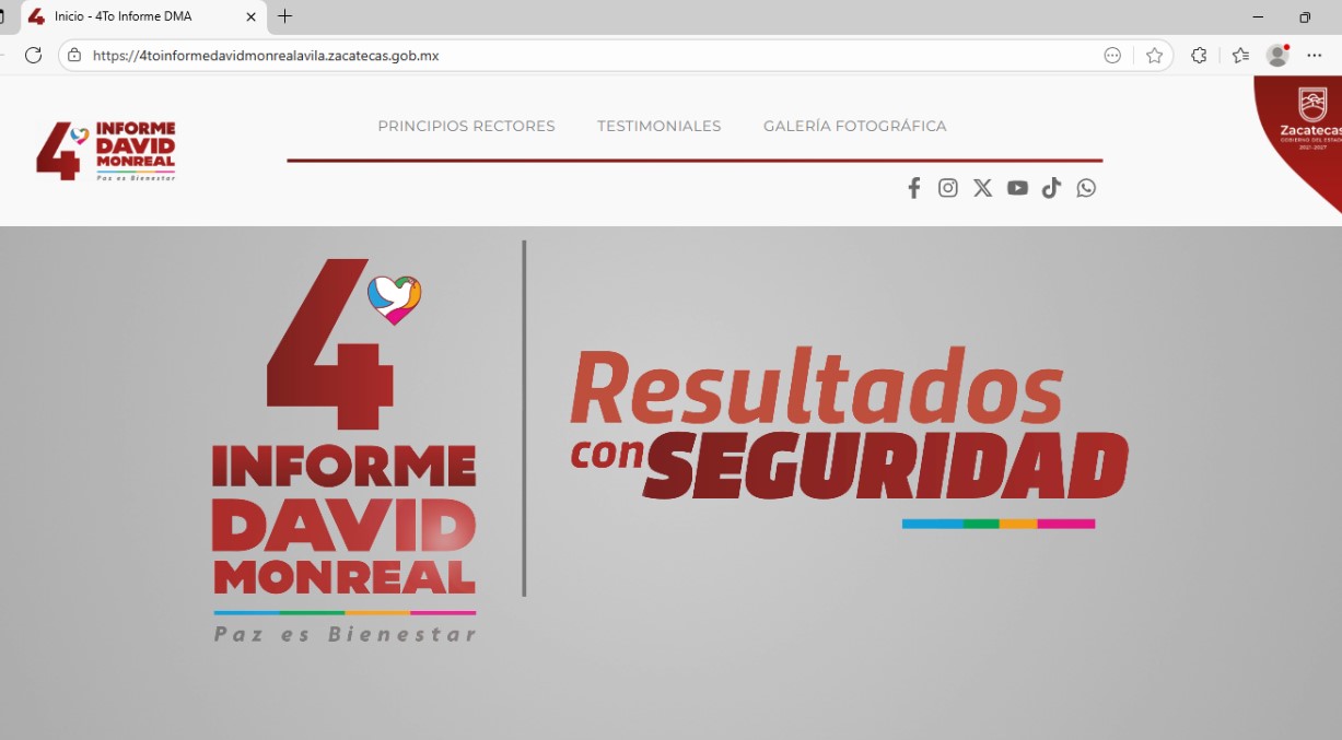 El sitio web, desarrollado en colaboración con la Coordinación de Comunicación Social del Gobierno del Estado, ya está disponible en: https://4toinformedavidmonrealavila.zacatecas.gob.mx/, aunque el documento descargable del 4º Informe y el chatbot serán activados hasta el 8 de septiembre.