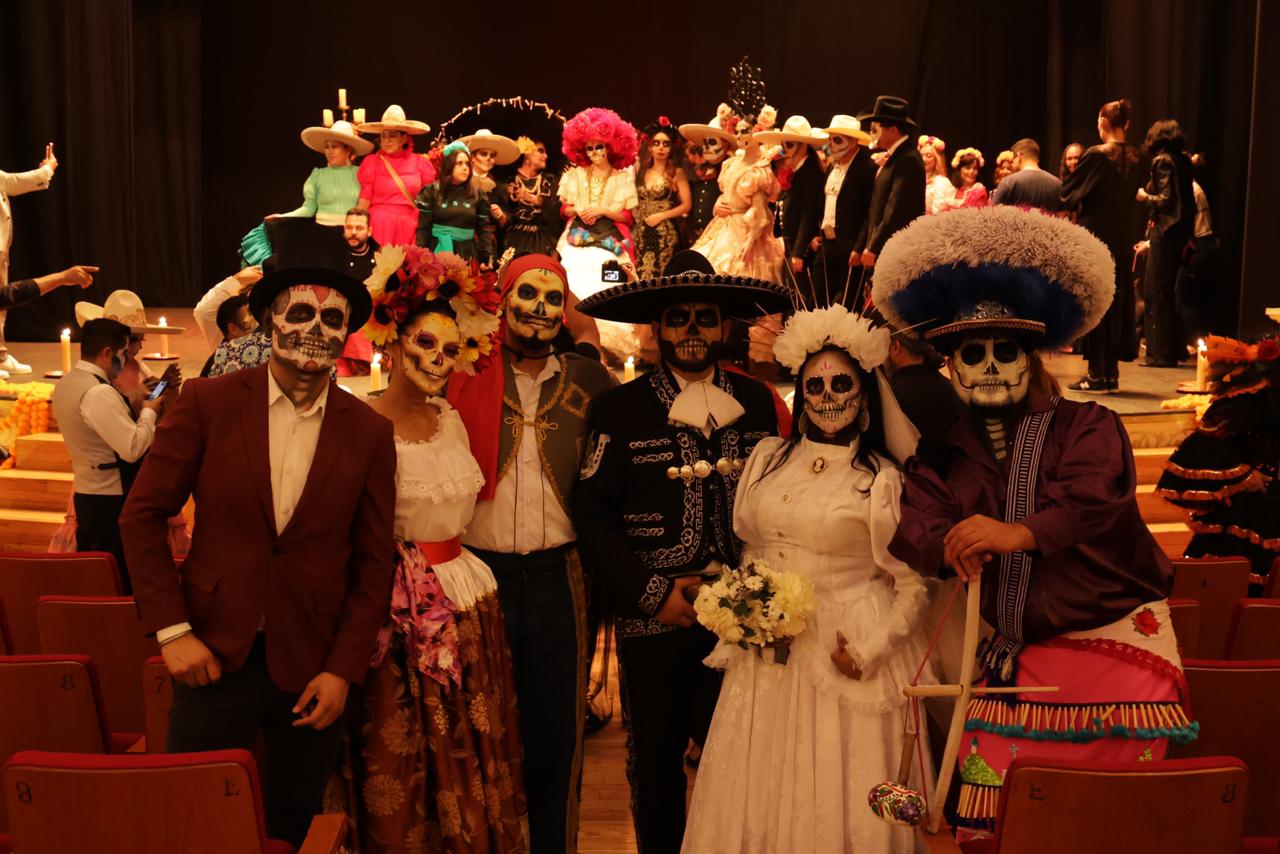 La convocatoria mostró una respuesta extraordinaria, con la participación de alrededor de 500 personas que transformaron el teatro en un vibrante mosaico de catrinas, catrines, calaveras mexicanas, luchadores, danzantes, mariachis, charros y personajes del folclor nacional.