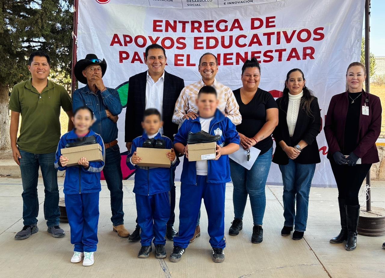 Con la finalidad de que las y los alumnos de las comunidades de Guadalupe cuenten con calzado digno para asistir a sus escuelas, continúa la entrega de Apoyos Educativos para el Bienestar, programa impulsado por el Gobernador David Monreal.