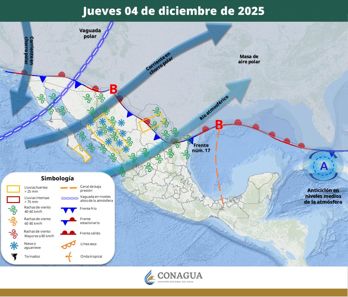 El Secretario General de Gobierno, Rodrigo Reyes Mugüerza, explicó que el pronóstico para las próximas horas es de temperaturas mínimas que alcanzarían hasta los menos 5 grados y en algunas zonas se prevén lluvias aisladas o chubascos, por lo que pidió a la población mantenerse atenta a la información que emitan las autoridades estatales y no exponer a cambios bruscos de temperaturas a menores de edad y adultos mayores.