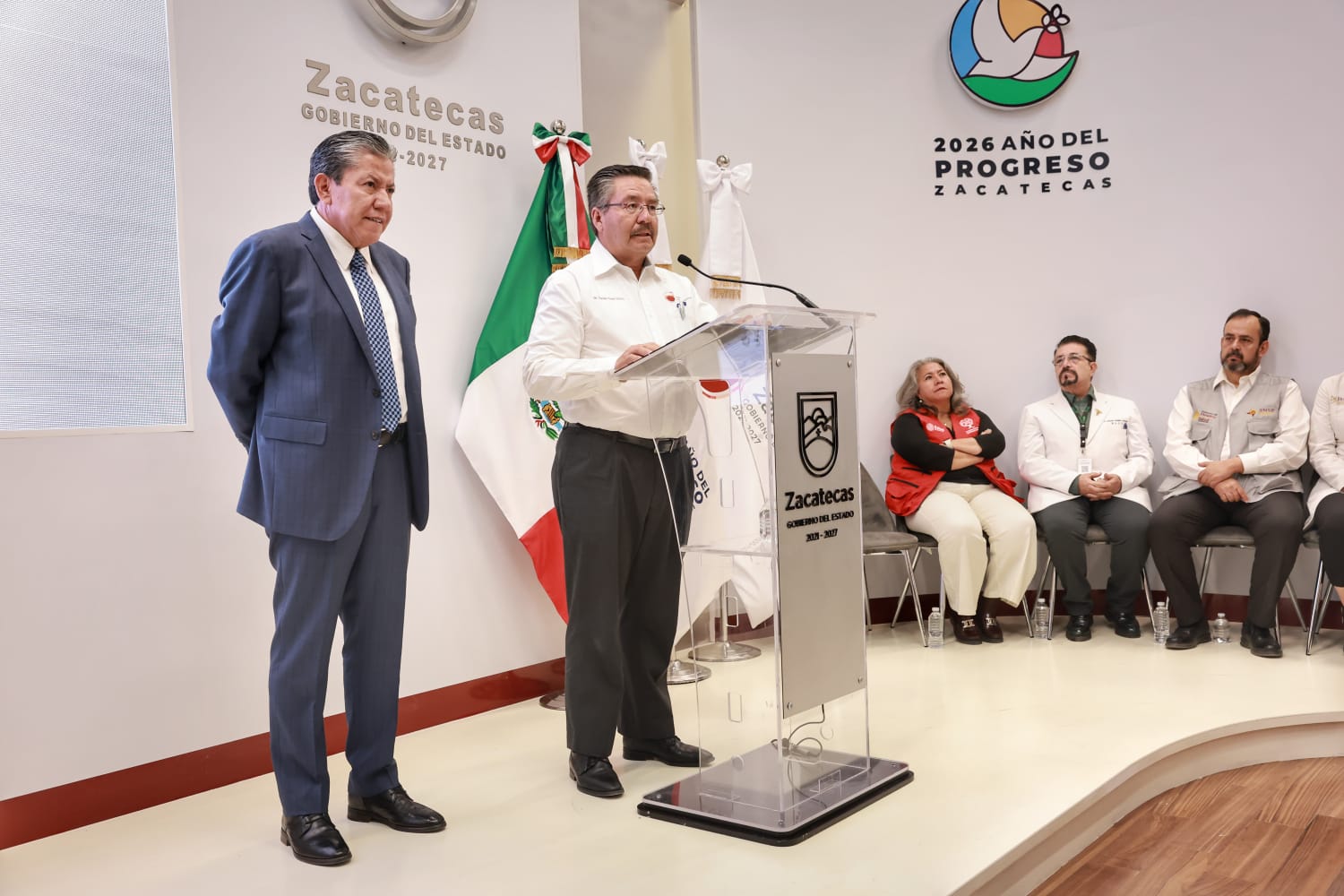 Zacatecas, Zac..- El Gobernador David Monreal Ávila encabezó el acto protocolario de la Primera Semana Nacional de Vacunación 2026, en Zacatecas, cuya atención a la ciudadanía inició el sábado 25 de abril y concluirá el 2 de mayo.