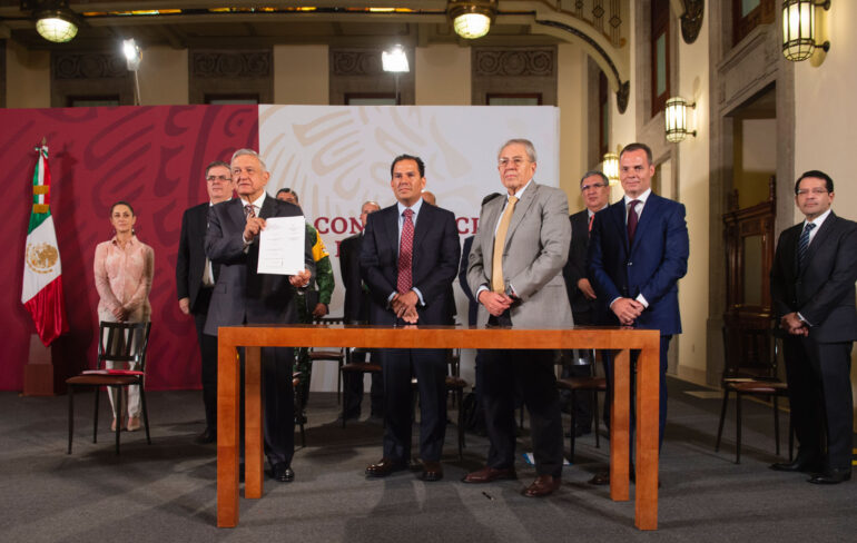 El presidente Andrés Manuel López Obrador firmó un acuerdo con la Asociación Nacional de Hospitales Privados “con el propósito de sumar recursos, voluntades y ayudarnos mutuamente a enfrentar esta epidemia de coronavirus. Es algo realmente importante, trascendente, el que el sector público y el sector privado se unan a esta crisis de salud”.