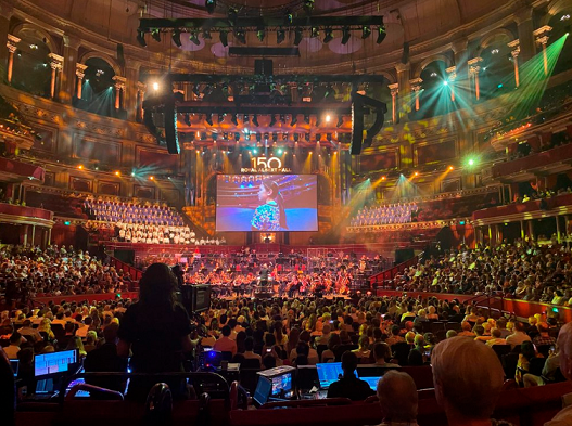La percusión corporal del coro juvenil emuló la construcción del edificio mientras la instrumentación de la orquesta ponía el toque épico a la velada, y una pantalla rememoraba algunos de los momentos icónicos de la historia del Royal Albert Hall, así como a sus protagonistas.