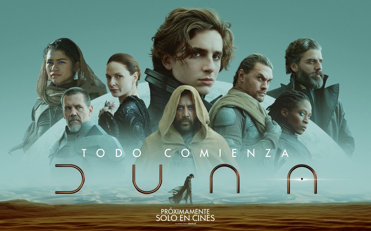 En el póster podemos observar uno de los diseños favoritos de las producciones hollywoodenses, a primera instancia podemos ver a Timothée Chalamet que interpretará a Paul Atreides, acompañado por Zendaya como Chani, Jason Momoa, SharonDuncan-Brewster, Javier Bardem, Oscar Isaac y Rebecca Ferguson como padres de Paul.