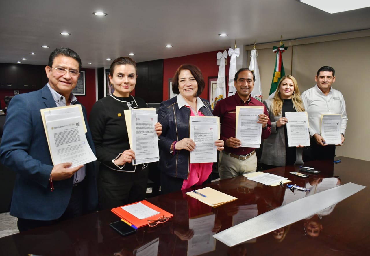 En esta importante firma de convenio participó, además del alcalde guadalupense, Analí Infante Morales, Síndica Municipal, Guillermo Gerardo Dueñas González, Secretario de Desarrollo Urbano, Ecología y Medio Ambiente, Carlos Alberto Leos Mata, Representante Regional del INSUS, Jesús Esteban Saavedra Espinosa de los Monteros, Director Regional de la CONAVI y Carolina Ramírez Tinajero, representando al INFONAVIT.