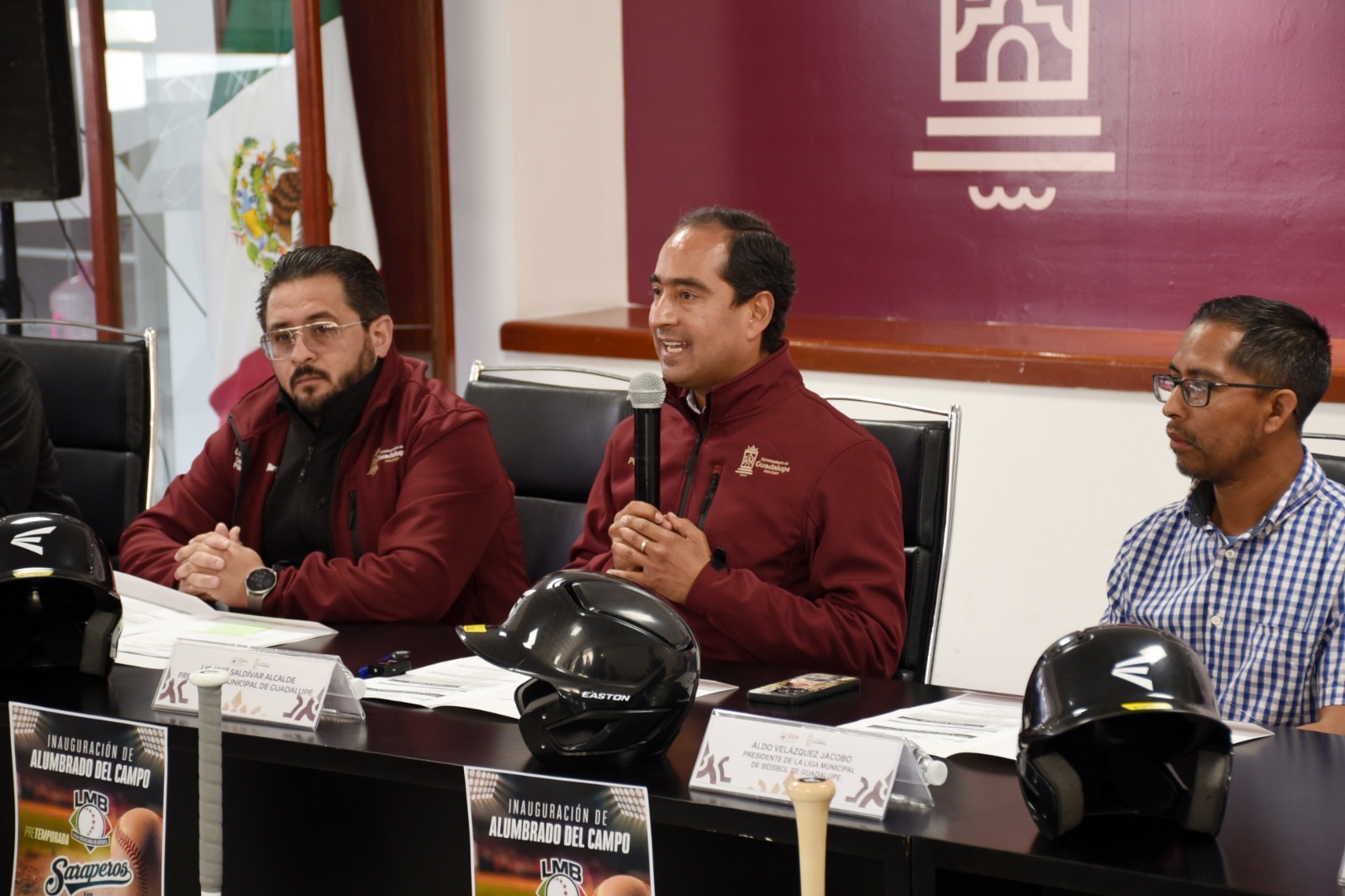 En esta conferencia de prensa, acompañaron al Presidente Municipal Pepe Saldívar; Ricardo García, Secretario de Obras Públicas del Municipio de Guadalupe; Efraín Bañuelos Cabrera, Presidente de la Asociación de Beisbol del Estado de Zacatecas; Cruz Alberto Moreno Zarazúa, Director del Deporte en Guadalupe y Aldo Velázquez Jacobo, Presidente de la Liga Municipal de Beisbol de Guadalupe.