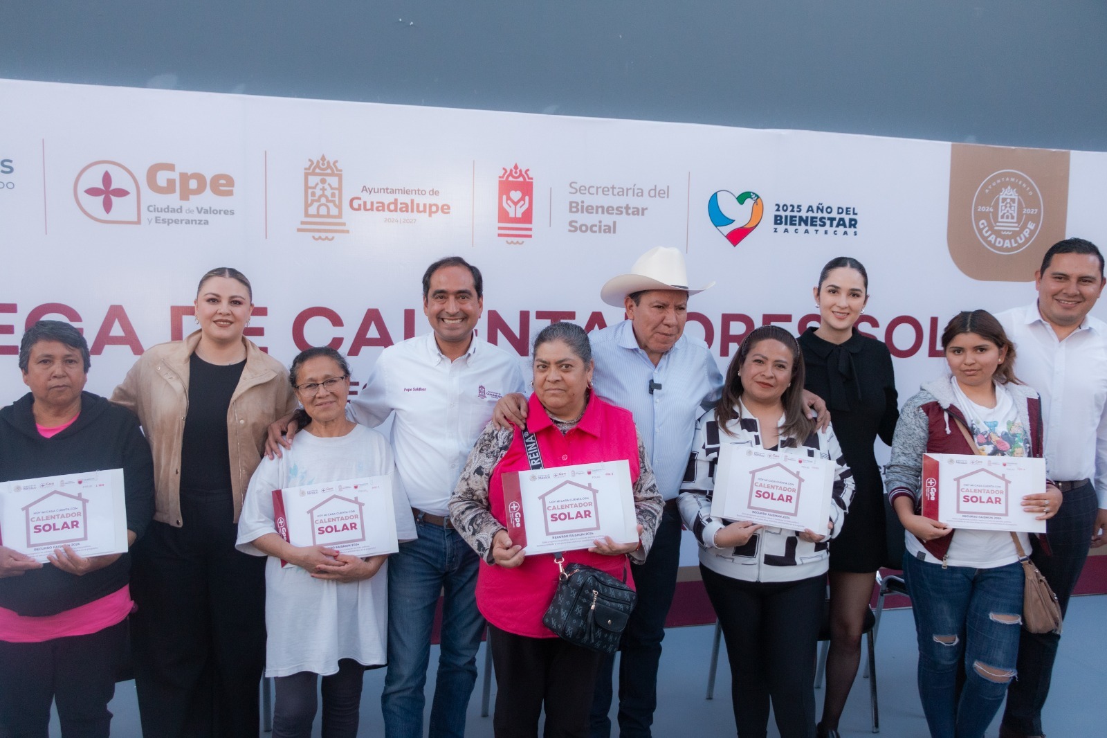 Este martes el municipio de Guadalupe fue partícipe de una importante entrega del programa de certificados de calentadores solares que promueve el Gobierno del Estado de Zacatecas, encabezado por David Monreal Ávila, quien estuvo acompañado por Pepe Saldívar, Presidente Municipal de Guadalupe, en el patio central del Palacio Municipal.