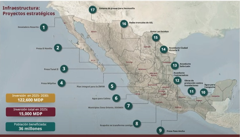 En La Mañanera del Pueblo de este miércoles se indicó que la construcción de la Presa Milpillas, en Zacatecas, es uno de los proyectos estratégicos programados por la Comisión Nacional del Agua (Conagua) para 2025 y a la cual se destinarán 8 mil 900 millones de pesos.