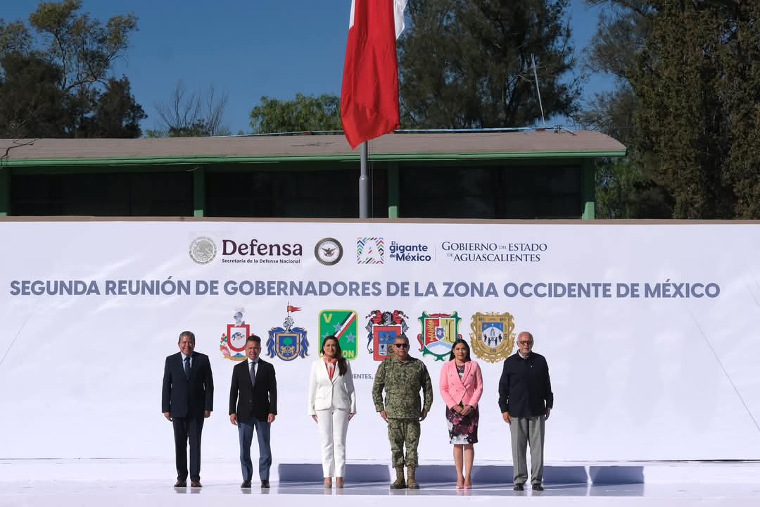 El encuentro realizado en las instalaciones del 4º Regimiento Mecanizado en la capital del estado vecino, al que asistió el mandatario zacatecano David Monreal Ávila, contó con la presencia de los gobernadores de Aguascalientes, María Teresa Jiménez Esquivel, como anfitriona; Colima, Indira Vizcaíno Silva; Jalisco, Jesús Pablo Lemus Navarro, y de Nayarit, Miguel Ángel Navarro Quintero.