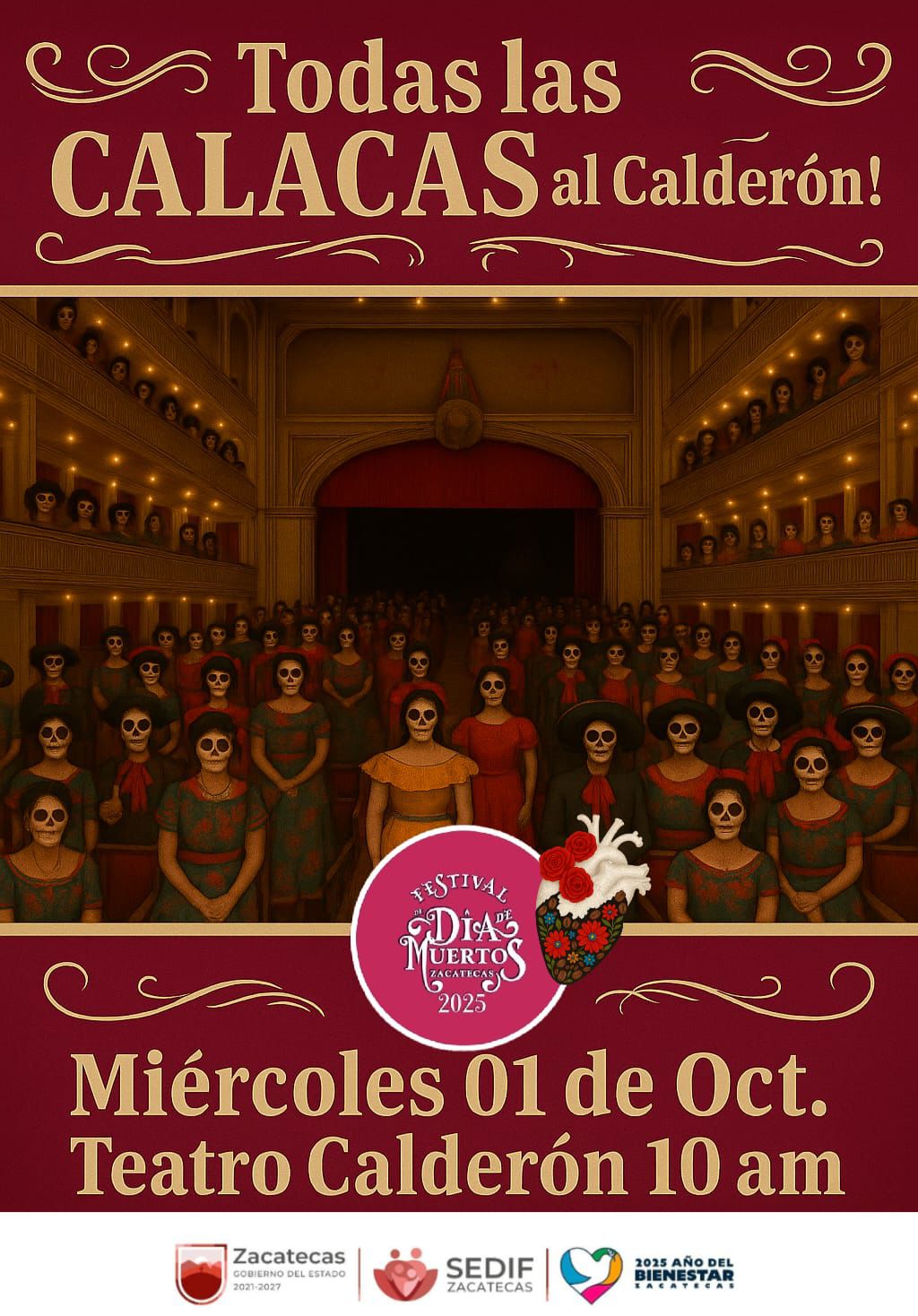 Como parte de las grabaciones del vídeo promocional del Festival de Día de Muertos Zacatecas 2025, se convocó a la población en general a participar en el rodaje, durante la escena final, el próximo miércoles 1 de octubre, a las 10:00 horas, en el emblemático Teatro Fernando Calderón, donde se pretende llenar el recinto con personas caracterizadas como calaveras mexicanas.