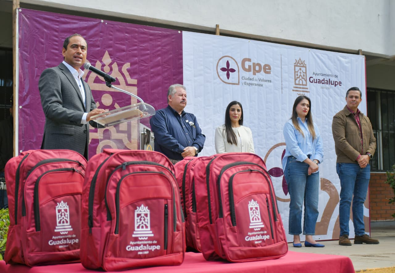 Con el objetivo de contribuir en la economía de las familias guadalupenses y que las y los estudiantes de nivel media superior cuenten con el material suficiente para llevar a cabo sus actividades académicas, el Presidente Municipal, Pepe Saldívar, entregó mochilas escolares en el CONALEP Plantel “Mtra. Dolores Castro Varela”.