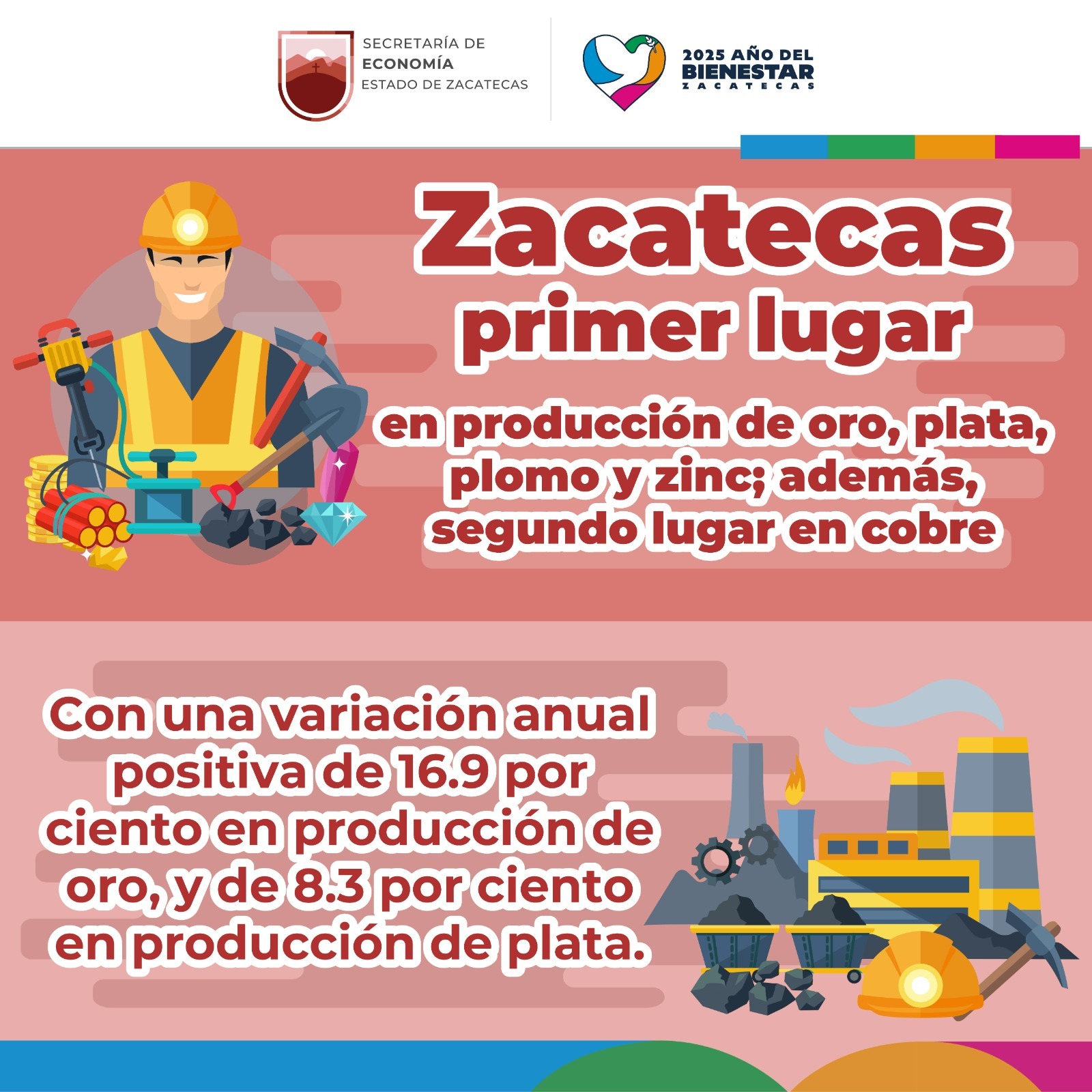 ▪️️ El estado registró una variación anual positiva de 16.9% en oro y 8.3% en plata, con lo que supera a Sonora, Durango y Chihuahua, en crecimiento minero