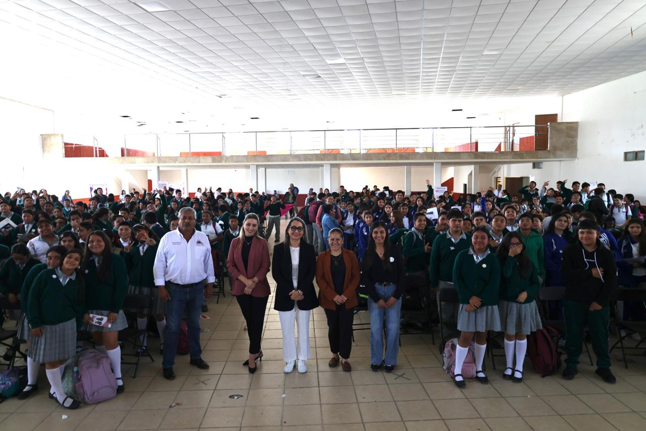 Fátima Soriano Canizalez, secretaria ejecutiva de SIPINNA, quien encabezó las jornadas en este municipio, en representación del Secretario General de Gobierno, explicó, a las y los adolescentes, que la Ruta NAME es un mecanismo de atención integral a niñas y adolescentes madres y/o embarazadas menores de 15 años de edad.