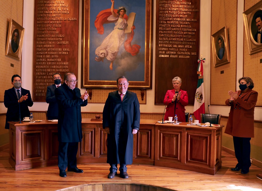 Al darle la bienvenida a nombre de las y los integrantes del Pleno, el Presidente del TSJEZ, Arturo Nahle García, resaltó la amplia y destacada trayectoria del Maestro Virgilio Rivera, “es un gusto y un honor compartir el Pleno con usted a partir del día de hoy”.