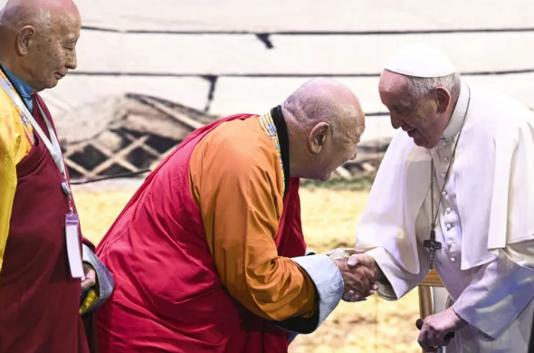 Ulán Bator (EFE).- El papa Francisco afirmó este domingo que las religiones están llamadas a ofrecer al mundo armonía ante los “tantos conflictos, tantas devastaciones ambientales, tantas persecuciones, tanto descarte de la vida humana”, en su discurso en la reunión con los representantes de otras religiones que mantuvo en Mongolia, un país de mayoría budista y donde los católicos son cerca de 1.400.