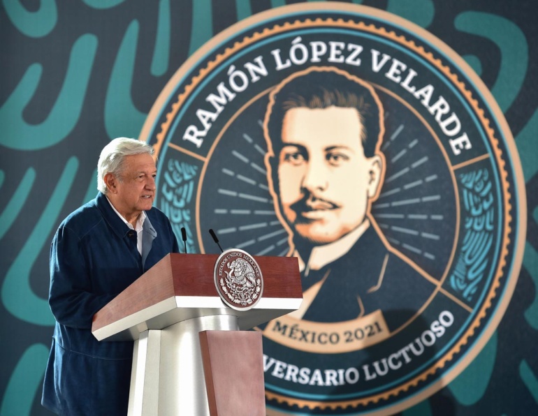 En Jerez de García Salinas, Zacatecas, el presidente Andrés Manuel López Obrador conmemoró el 100 aniversario del fallecimiento del poeta Ramón López Velarde.